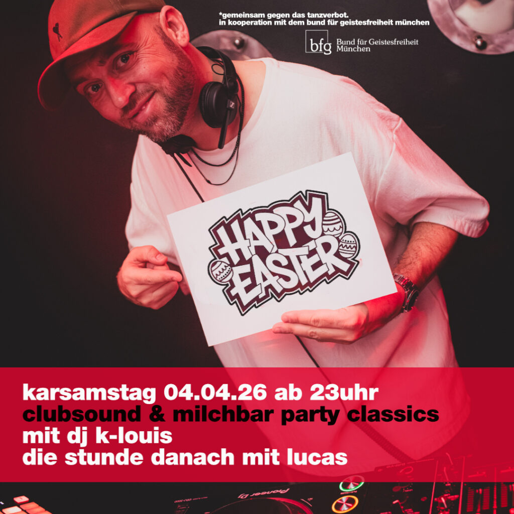 Die neue Saturday-Night-Party in der Milchbar: Gute Laune, „Hands in the Air“ und Mitsingen zu den besten Clubtunes, House-Sounds und Milchbar Classics. Die neuen Samstag-Residents K. Louis und DJ Tues stehen für den unverwechselbaren Party-Mix und holen den bekannten Milchbar-Vibe zurück auf die Tanzfläche.