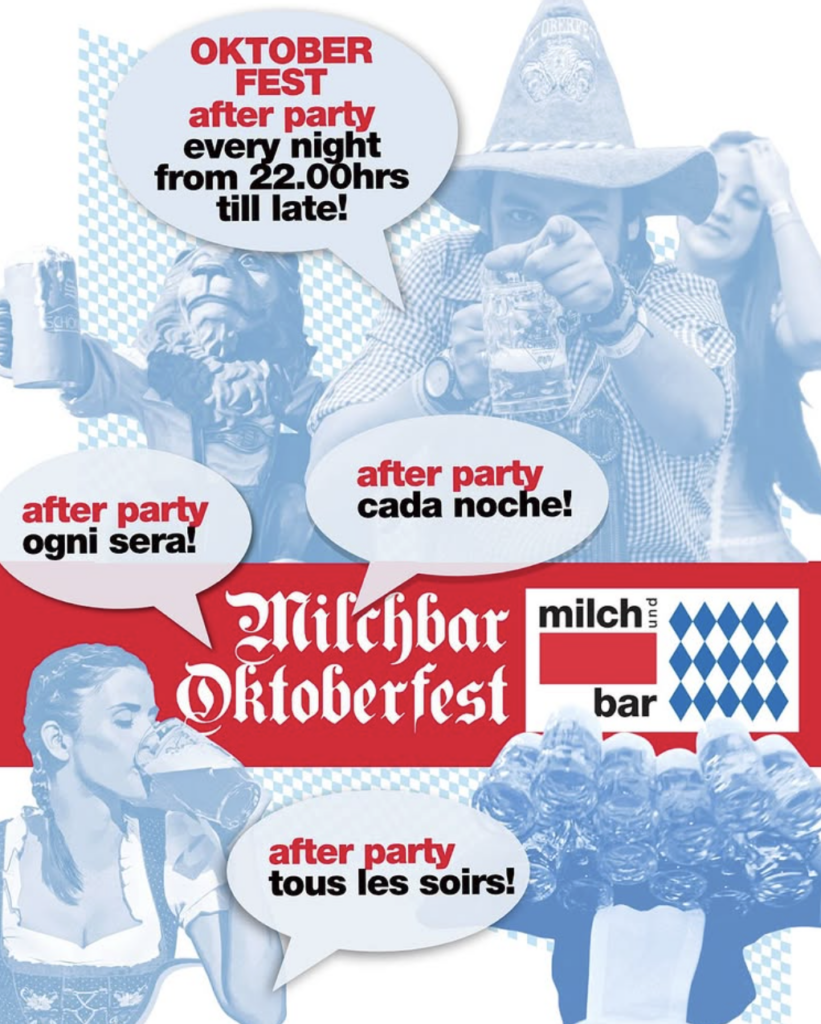 Wir feiern 16 Nächte lang die legendäre After Oktoberfest Party in der Milchbar.